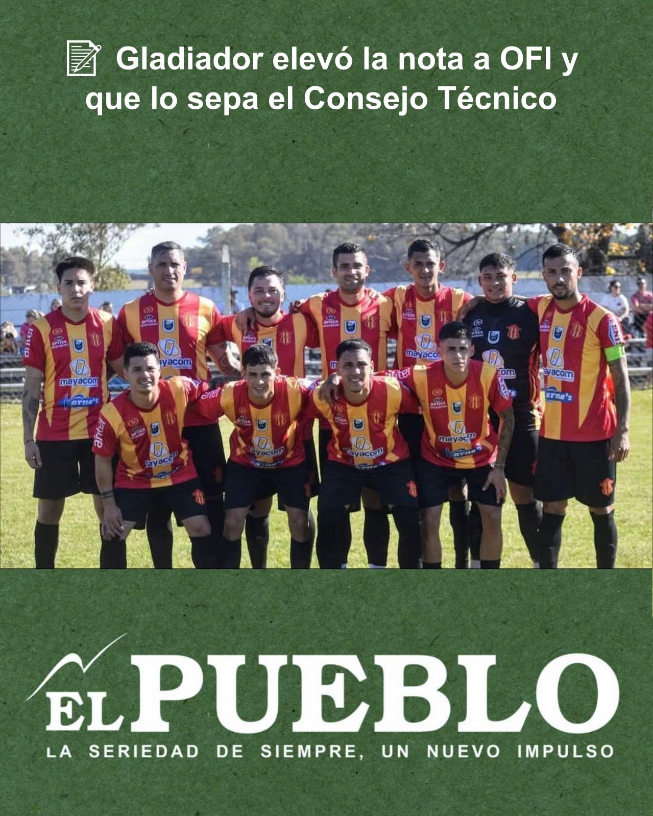 En ediciones pasadas de EL PUEBLO, el apunte en una dirección: la disconformidad de Gladiador ante la actitud asumida por el Consejo Técnico, a la hora de designar la cuarterna para el juego de esta tarde. Será el partido de vuelta ante Polancos de Nueva Palmira, en el marco de las semifinales de la Divisional «B».