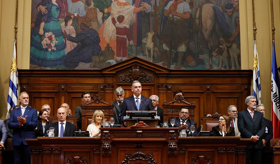 Luego de declarar su compromiso de honor a desempeñar lealmente el cargo, el profesor Yamandú Orsi pronunció un discurso ante la Asamblea General, reunida en sesión solemne, en el que valoró la “acumulación positiva” del país en estos 40 años de democracia tras los sucesivos gobiernos y el rol de los partidos políticos. El presidente electo instó a que Uruguay sea “un faro de convivencia, respeto y desarrollo”.