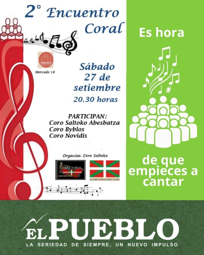 La cita reunirá a tres agrupaciones: Saltoko Abesbatza, Coro Byblos y Coro Novidis, en una noche que combina música, identidad y encuentro comunitario.
