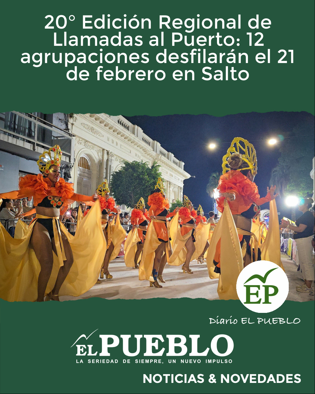 El próximo sábado 21 de febrero, la ciudad de Salto vivirá una noche muy especial con la realización de la 20° edición regional de Llamadas al Puerto, uno de los eventos más emblemáticos del calendario cultural salteño.
