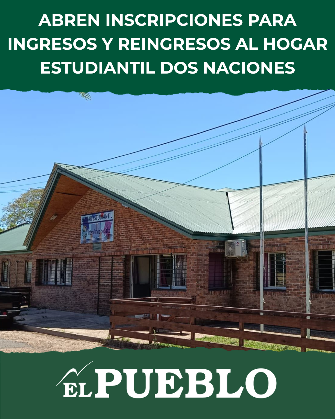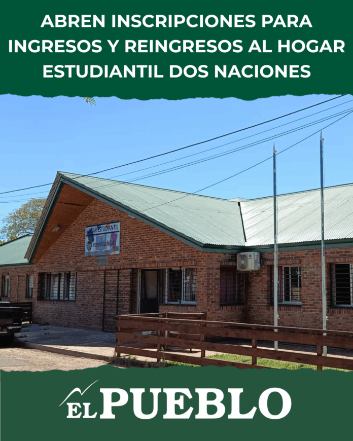 El Departamento de Desarrollo Social del Gobierno de Salto informó que ya se encuentra abierto el período de inscripción para ingresos y reingresos al Hogar Estudiantil Dos Naciones correspondiente al año 2026. Este espacio está destinado a jóvenes del interior del departamento que cursarán estudios en Liceos o UTU en la ciudad de Salto.