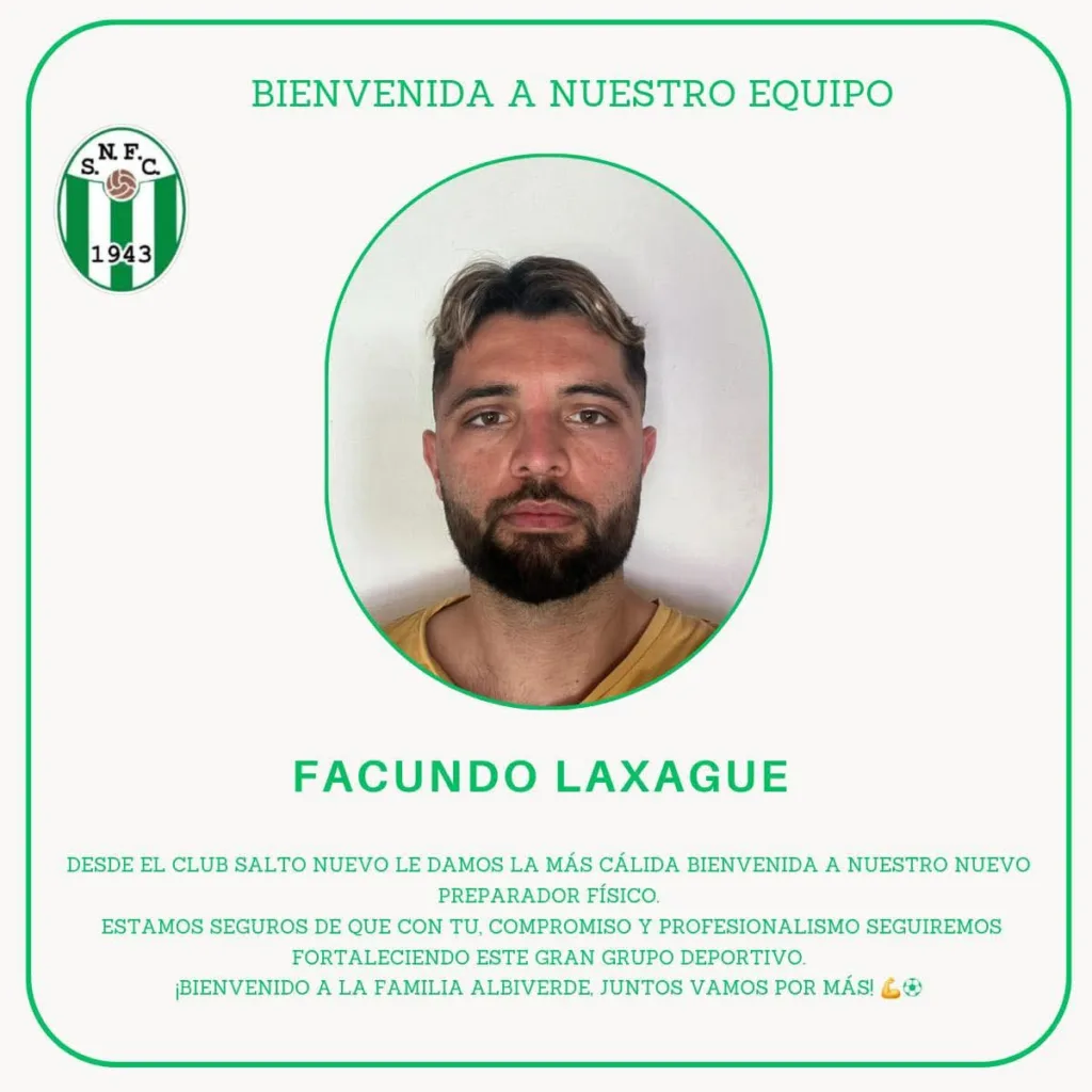 Salto Nuevo anunció oficialmente a Facundo Laxague, para ejercer la función de Preparador Físico.