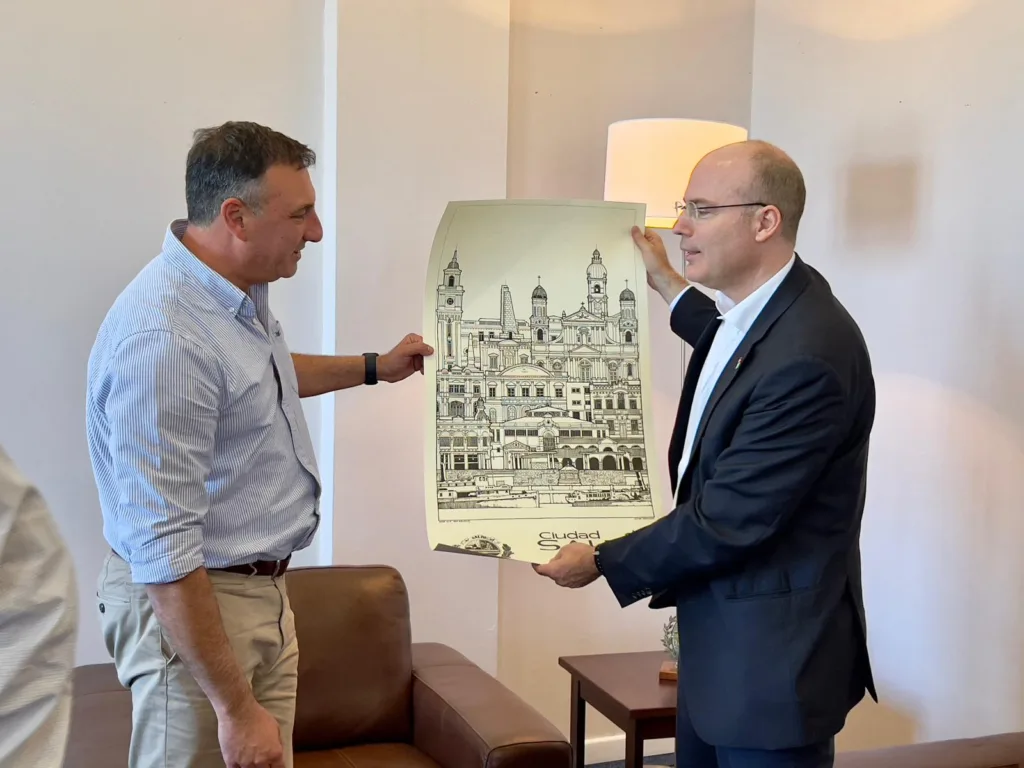 El intendente de Salto, Carlos Albisu, recibió este martes al embajador de Suiza en Uruguay, Álvaro Borghi, en un encuentro que apuntó a fortalecer los lazos institucionales y la cooperación cultural entre ambos países.
