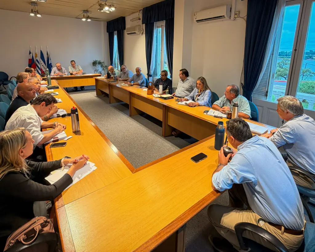 El intendente Carlos Albisu, junto al secretario general Walter Texeira Núñez, reunieron a buena parte del gabinete para ajustar la coordinación entre las distintas reparticiones del Gobierno de Salto de cara a Semana de Turismo.