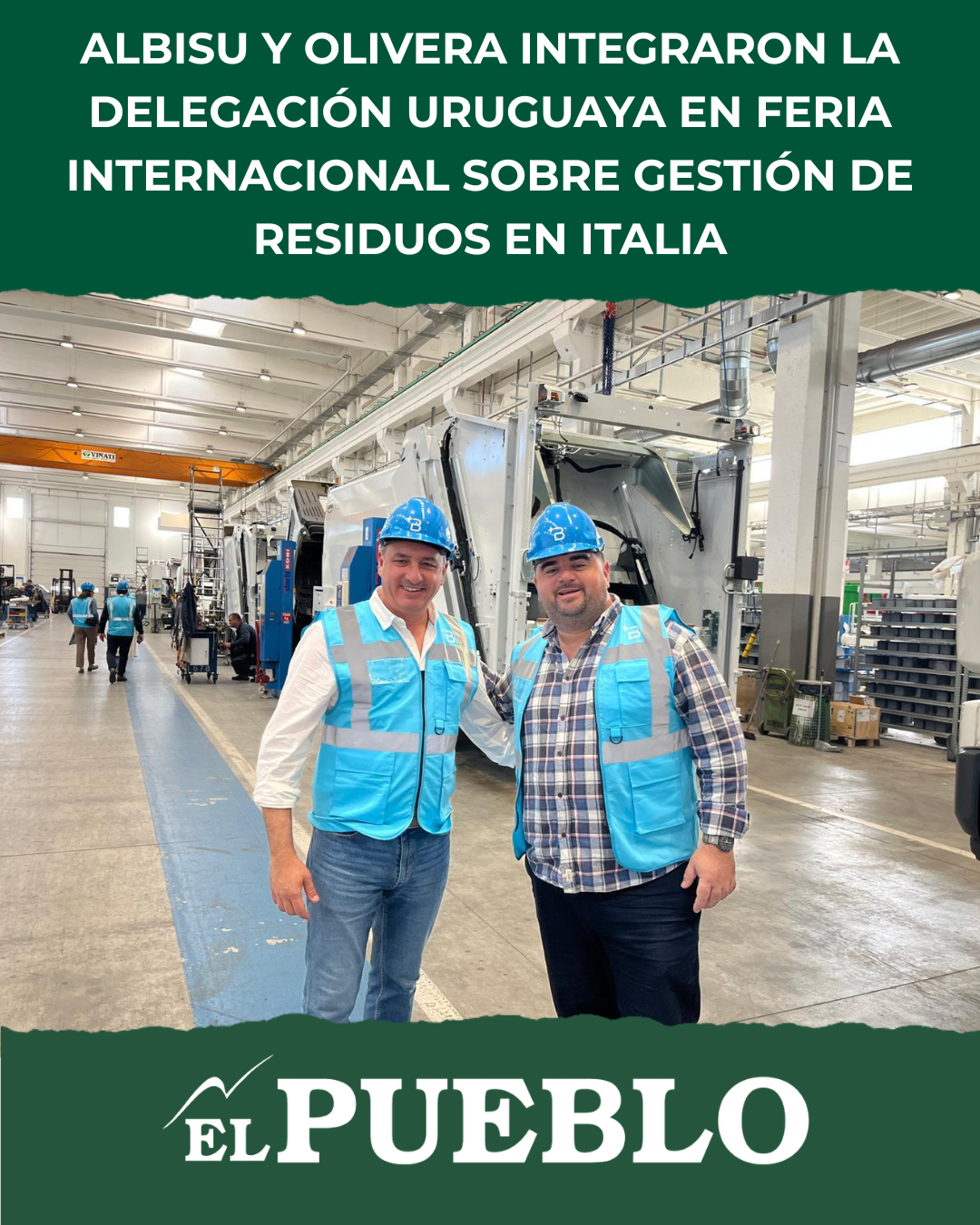 El intendente de Salto, Carlos Albisu, y el intendente de Paysandú y presidente del Congreso de Intendentes, Nicolás Olivera, formaron parte de la delegación uruguaya que asistió a EcoMondo 2025, una de las ferias internacionales más influyentes en gestión de residuos, economía circular e innovación ambiental. El encuentro se desarrolló en la ciudad de Rímini, Italia, y reunió a especialistas de todo el mundo.