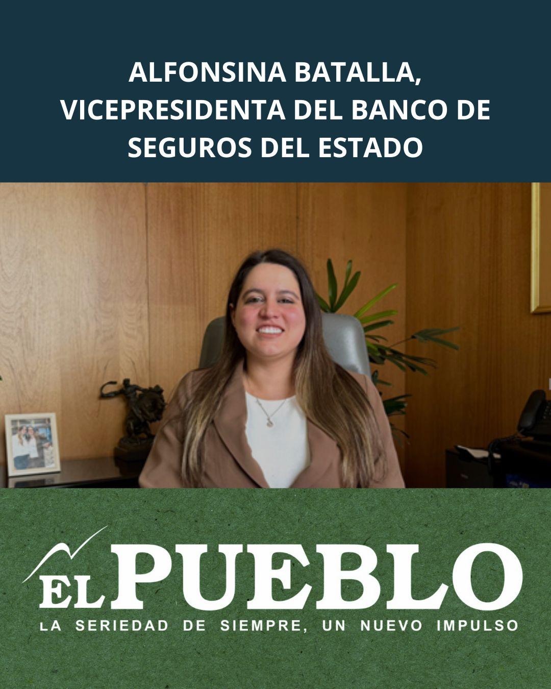 Desde abril del presente año, con el cambio de autoridades por el nuevo gobierno, integra el directorio del Banco de Seguros del Estado (BSE) la contadora Alfonsina Batalla. Salteña desde siempre y madre de dos niños. Profesional al servicio del BSE desde 2012. En vísperas de graduarse con una maestría en Economía, en la UDELAR.