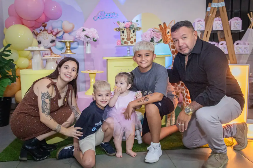 Eduardo Ramos y Rocío Acosta; sus hermanos: Santino Ramos y Constantino Echeverría; Padrinos: Ricardo Acosta y Giovanna Servetti, familiares y amigos en Complejo Arambarri.