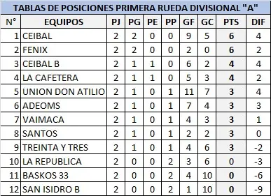 En la Divisional A de la Liga de Fútbol Súper Senior, la punta a manos de dos equipos y en el caso de Ceibal, el segundo goleador por ahora (9), mientras Unión Don Atilio registra 11 goles en dos partidos. Tres equipos que no sumaron puntos y dos de ellos, con las defensas más vulneradas. Se trata de los 12 equipos en la clasificación general.
