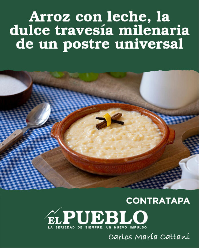 En Argentina y Uruguay, el arroz con leche se cubre con una capa de dulce de leche o caramelo criollo que eleva lo humilde a sublime.