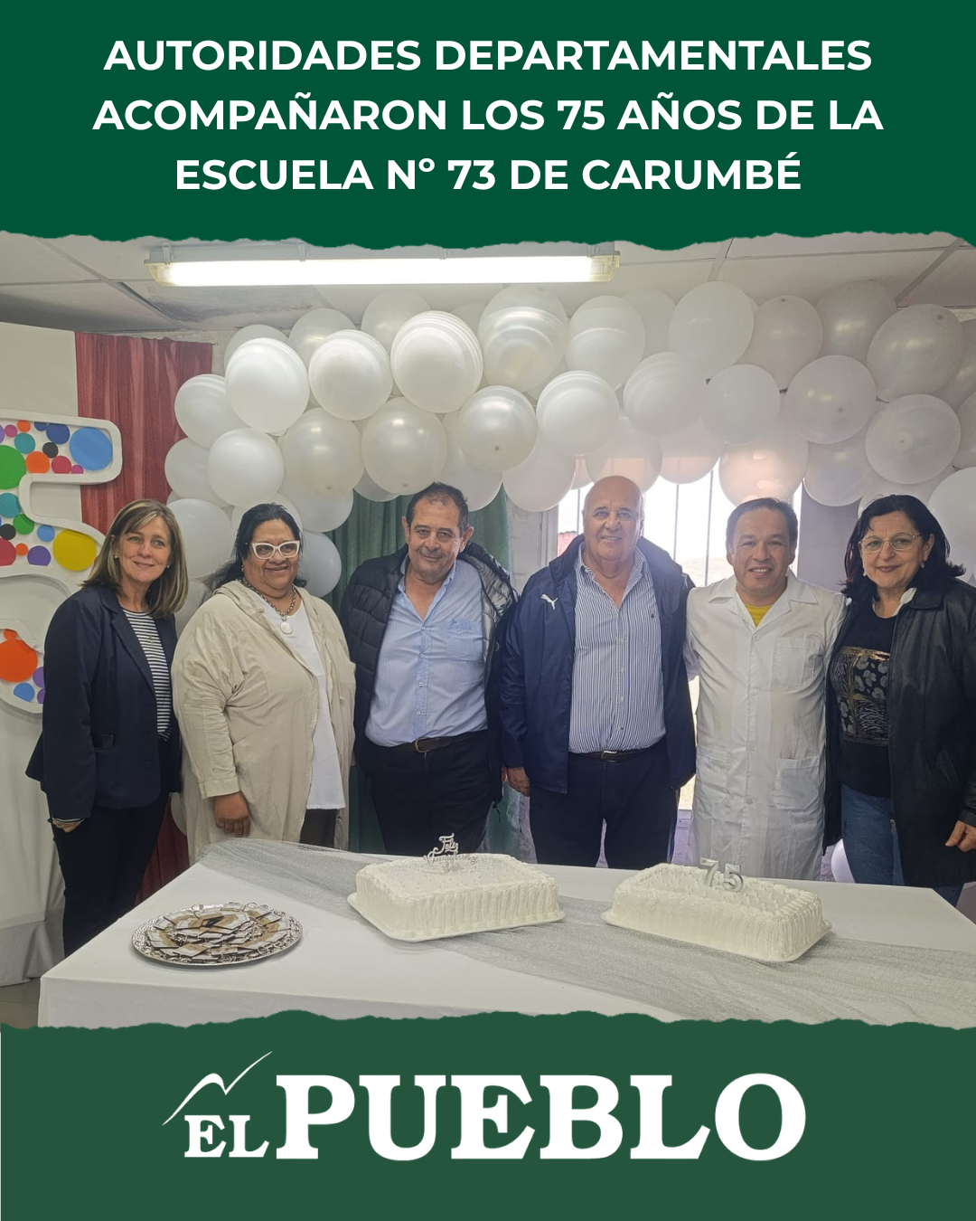 El intendente interino de Salto, Francisco Blardoni, junto al director de Descentralización, Daniel Galliazzi, participaron este viernes en el acto conmemorativo por el 75º aniversario de la Escuela Nº 73 de Carumbé.