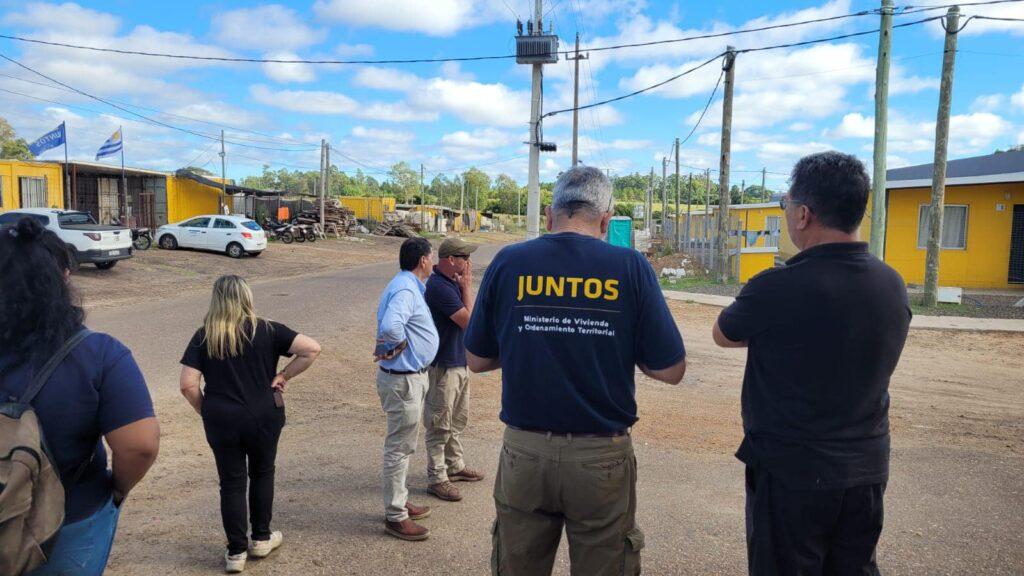 El director de Servicios Públicos, Mario Furtado, junto al coordinador Jorge Fontora y el encargado de Alumbrado Público, Julio Giovanoni, acompañaron a Nelly Rodríguez, directora de Vivienda y Hábitat, y a arquitectos y coordinadores del Ministerio de Vivienda y Ordenamiento Territorial.