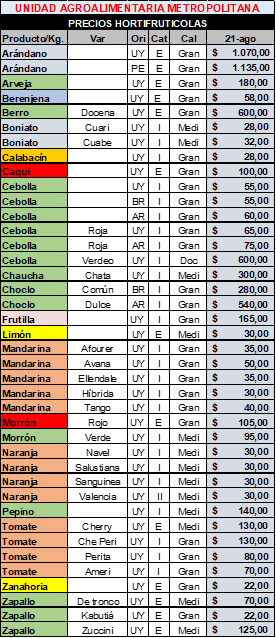 Mercado. Ahora, informamos sobre la comercialización, desde los informes de Precios Mayoristas de la Unidad Agroalimentaria Metropolitana, U.A.M., a saber: