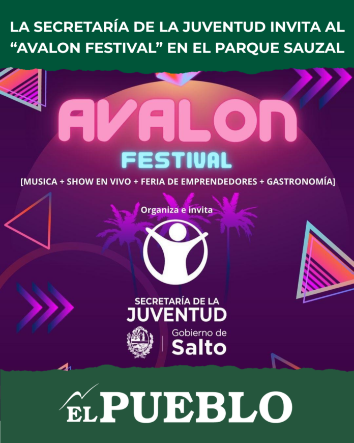 La Secretaría de la Juventud del Gobierno de Salto invita a la población a participar del Avalon Festival, una propuesta cultural y recreativa que se realizará este sábado 27 de diciembre, a partir de las 19:00 horas, en el Parque Sauzal.