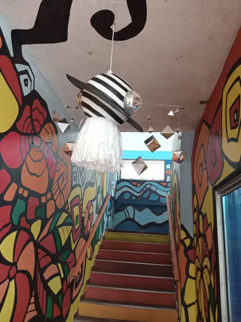 Cada ejercicio propuesto por Sánchez impulsó a los grupos a experimentar con materiales, texturas, colores y volúmenes. Las paredes comenzaron a hablar a través del color; los pasillos se transformaron en pasajes de descubrimiento.