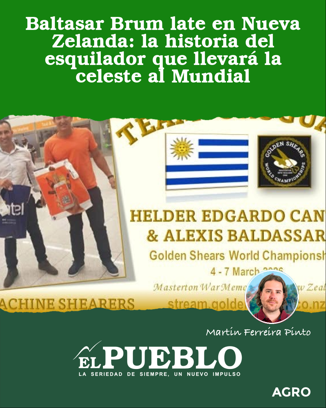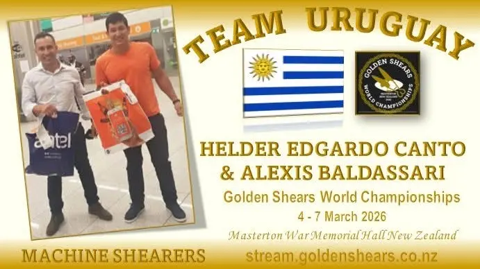 A menos de un mes del Campeonato Mundial de Esquila, Uruguay vuelve a decir presente en la máxima cita internacional del rubro. La edición 2026 se desarrollará del 4 al 7 de marzo en el Masterton War Memorial Hall de Nueva Zelanda, con la participación de cerca de 30 países, y entre los representantes celestes estará Helder Canto, esquilador de Baltasar Brum, con casi tres décadas de trayectoria en el oficio junto a Alexis Baldassari..