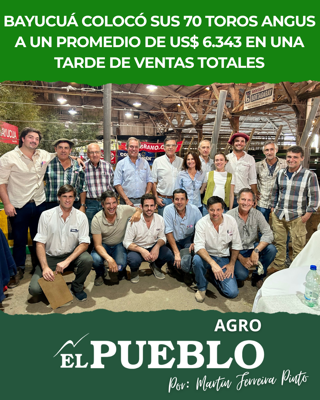 Con una pista encendida y el respaldo de compradores de todo el país, la cabaña Bayucuá, de la familia Mattos, volvió a confirmar por qué es un sello de referencia en la genética Angus uruguaya. En su tradicional remate anual, realizado en la Agropecuaria de Salto, se dispersó la totalidad de la oferta, 70 toros y 100 hembras, en una venta ágil y con valores que reflejaron la calidad de los ejemplares.