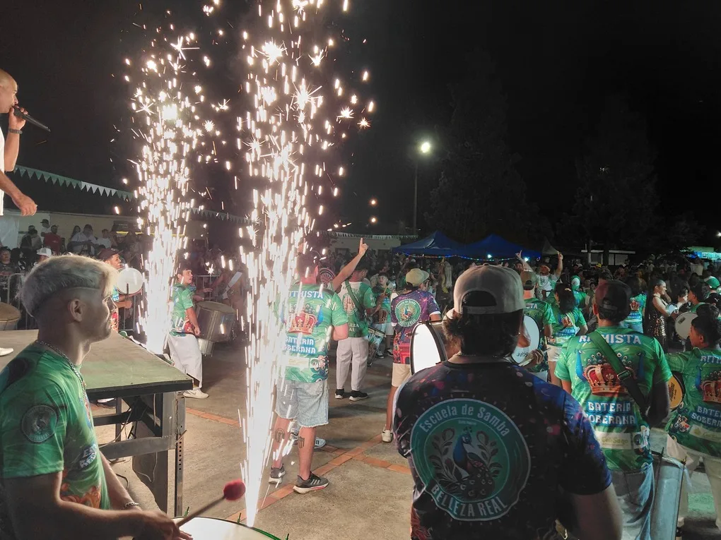 Antes de su presentación, como se viene haciendo en todas las instancias de esta naturaleza, las distintas escuelas de samba de Salto participaron de las actividades sobre el escenario, en una plaza desbordante de público que esperaba no solo disfrutar de los espectáculos ofrecidos por las visitantes, sino también aplaudir a la anfitriona y dueña de casa, Belleza Real.