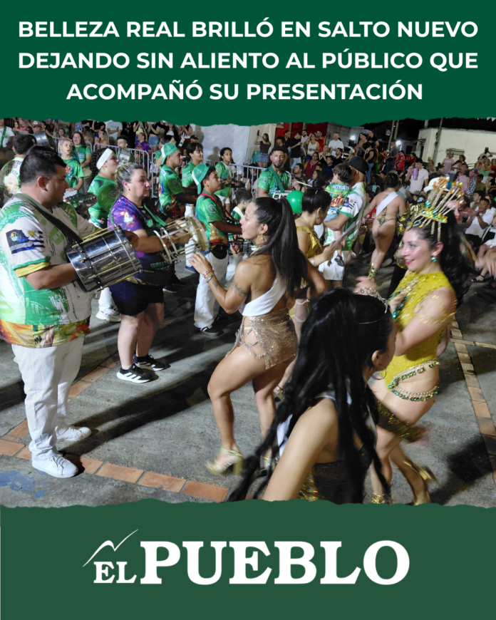 Belleza Real copó la Plaza Benito de Paula en Salto Nuevo y cautivó al público con su despliegue de color y alegría, en una noche totalmente vestida de verde y blanco.