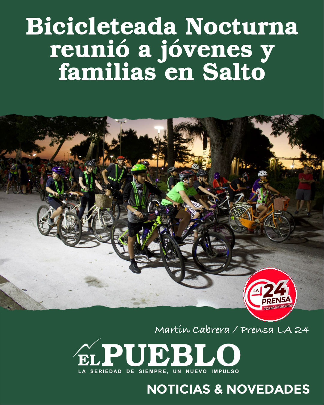 La Oficina de la Juventud del Gobierno de Salto realizó con gran participación la primera Bicicleteada Nocturna, una propuesta que convocó a jóvenes y familias para disfrutar del deporte y la vida al aire libre.