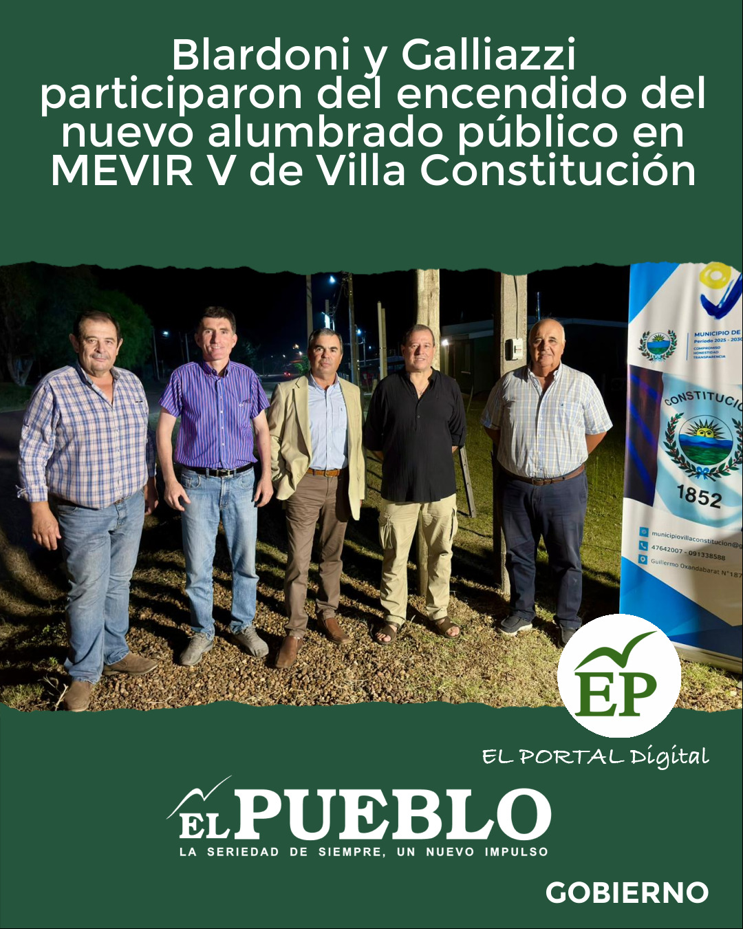 El intendente interino de Salto, Francisco Blardoni, y el director de Descentralización, Daniel Galliazzi, participaron del encendido del nuevo sistema de alumbrado público en el barrio MEVIR V, ubicado en la intersección de Ituzaingó y Juan Chúa, en la localidad de Villa Constitución.