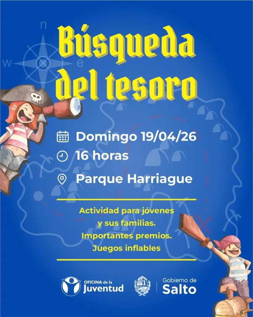 El Gobierno de Salto, a través de la Oficina de la Juventud, invita a participar de una nueva jornada recreativa denominada “Búsqueda del Tesoro”, una actividad pensada para jóvenes y sus familias.