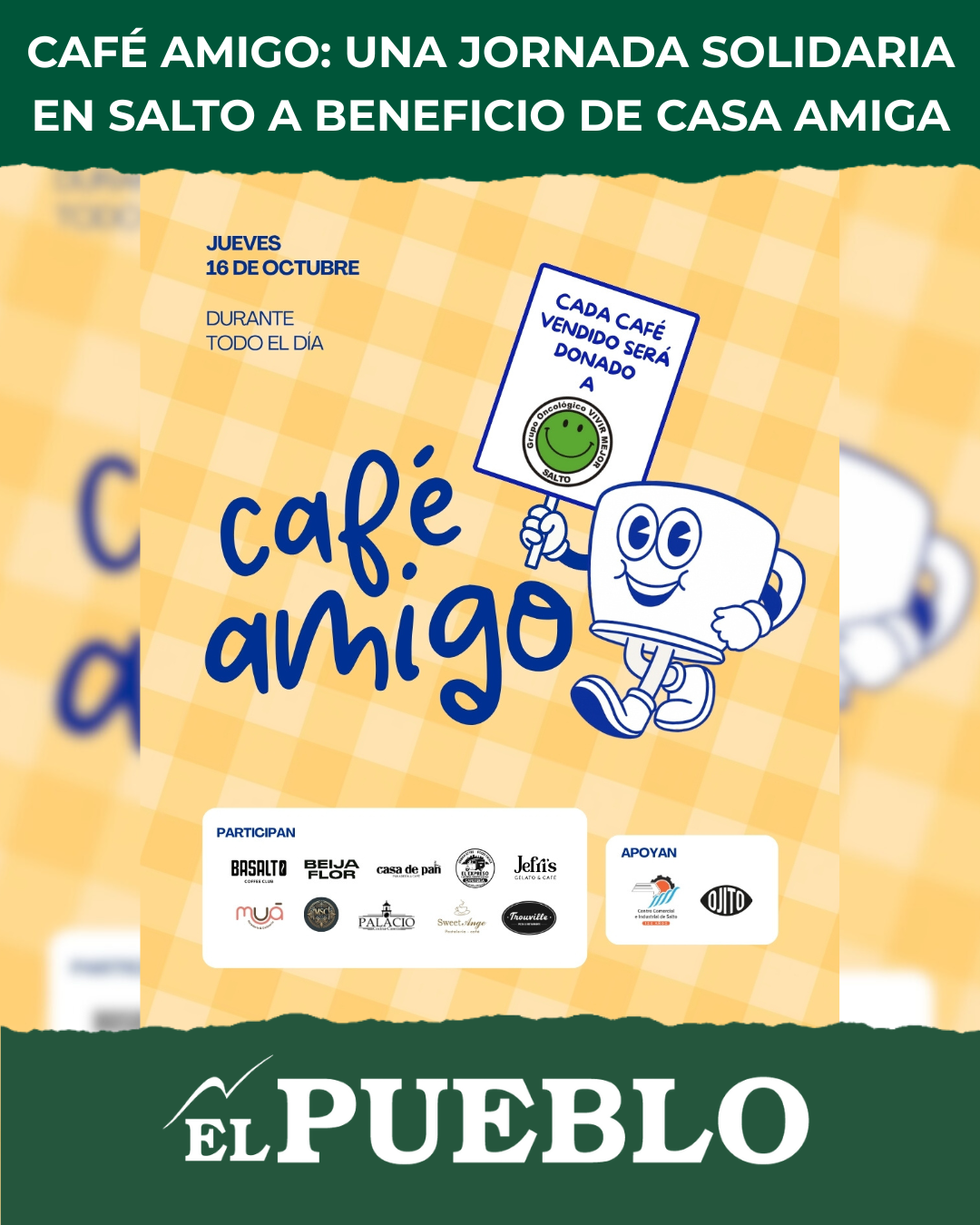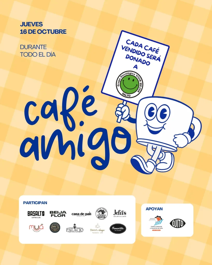 La propuesta, impulsada por el Centro Comercial e Industrial de Salto y acompañada por un importante grupo de cafeterías locales, consiste en destinar todo lo recaudado por la venta de cafés durante la jornada de hoy a beneficio de esta organización, que trabaja día a día para ofrecer alojamiento, contención y alimentación a pacientes que llegan desde distintos puntos del país para realizar sus tratamientos en el departamento.