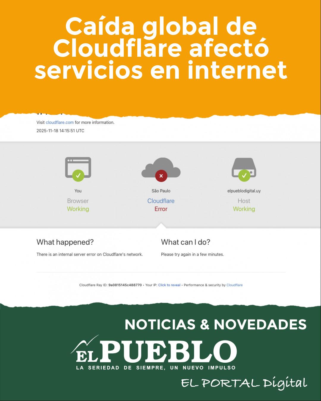 Una falla internacional en la red de Cloudflare dejó sin servicio a plataformas digitales, causando interrupciones en redes sociales, herramientas de IA y sitios web, incluido nuestro portal.