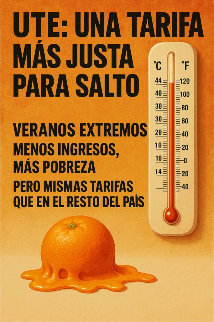 ¿Por qué? Porque el norte del país vive una realidad distinta. Mientras en Montevideo y el sur los consumos se mantienen más estables, en Salto y la región los veranos se tornan insoportables, con temperaturas extremas que obligan a miles de familias a usar aire acondicionado casi de forma permanente. El resultado es simple, las facturas de energía se disparan justo en una zona donde los ingresos son un 40% más bajos que en la capital y donde la informalidad laboral llega al 30%.