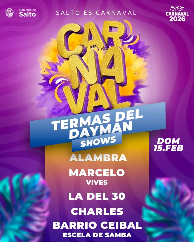 El Carnaval de Salto también se traslada este fin de semana largo a los centros termales, donde se espera una intensa agenda de espectáculos musicales y desfiles, sumando color, ritmo y movimiento turístico a dos de los principales atractivos del departamento.