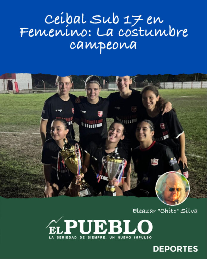 Se jugó la tercera fecha del campeonato salteño de fútbol femenino sub 17 y fue empate de Ceibal 1 gol Mia Fernández Universitario 1. Con este resultado las dirigidas por Alfredo Javier Viera obtienen el Torneo Clausura y acumulado. De lo que no hay dudas: el notable y saliente protagonismo de Ceibal en el Fútbol Femenino, mientras el DT de la certera orientación, acumula un tiempo más a favor de su reinado individual. Desde el delegado JAVIER DA COL a EL PUEBLO, este registro gráfico para compartir. En la hora de la consagración, las copas ganadas no son un detalle menor.