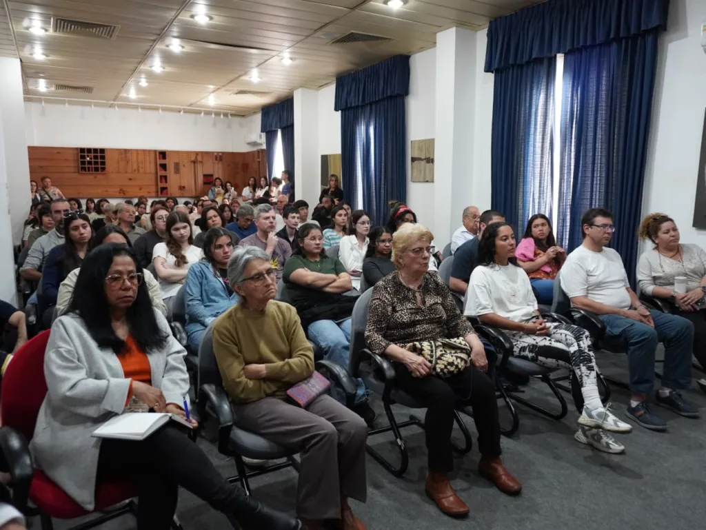 En una concurrida sala de conferencias del Palacio Córdoba, la maestra Catalina Ramírez Benítez, referente de la comunidad Pindó de Itapúa (Paraguay), acompañada por su pareja David Ocampo, ofreció una enriquecedora charla abierta al público y a distintos grupos de estudiantes.