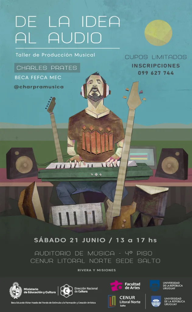 Este taller forma parte de la devolución comunitaria de la beca FEFCA (Fondo de Estímulo a la Formación y Creación Artística), a través de la cual Charles Prates comparte lo aprendido durante su proceso de formación con el reconocido productor Julio Berta, uno de los referentes de la escena musical uruguaya.