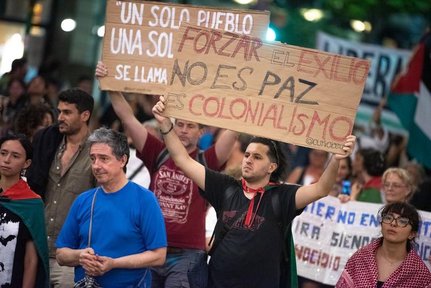 Durante la marcha, se expresaron consignas contra el gobierno de Benjamín Netanyahu y se leyó una proclama en la que se exigió la “ruptura de todo tipo de relaciones con el Estado de Israel hasta que cumpla con el derecho internacional”.
