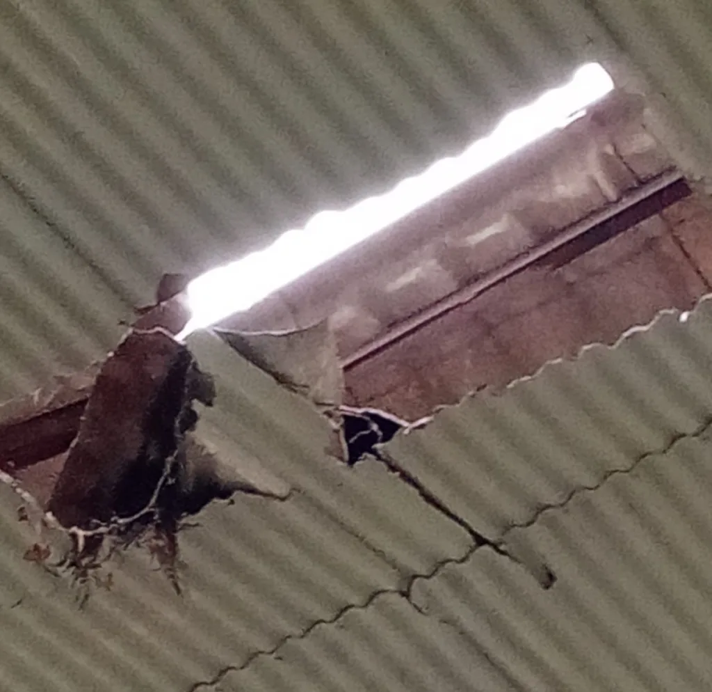 Durante las inspecciones se constató el desprendimiento de parte del techo, una situación que representa un riesgo para la seguridad tanto de los usuarios como del personal que trabaja en el lugar. De acuerdo a los informes técnicos, el deterioro de la estructura no es reciente, sino que se viene manifestando desde hace un período prolongado.