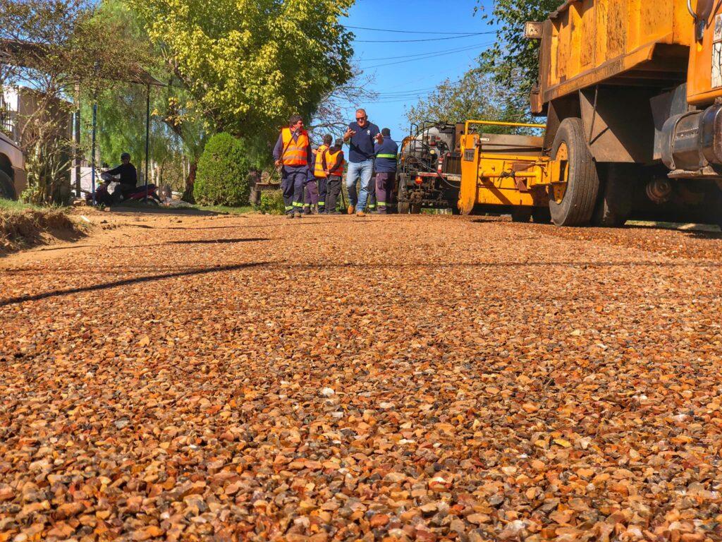 El pasado sábado se llevaron adelante trabajos de colocación de riego bituminoso en las calles del barrio El Triángulo, una intervención clave para mejorar la transitabilidad en la zona.