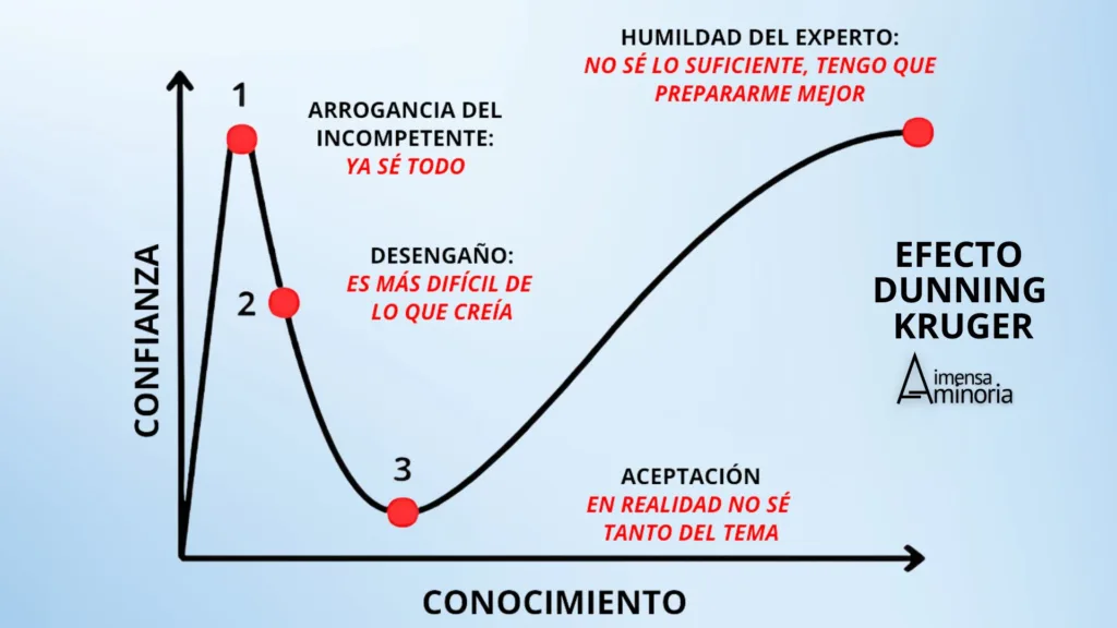 Como no percibe la dificultad, subestima el desafío. Solo cuando empieza a involucrarse o a comprender mejor el tema, toma conciencia de todo lo que no sabe.