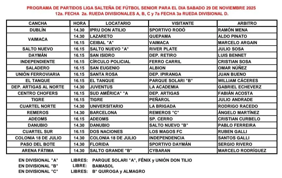 📅 Sábado 29 de noviembre