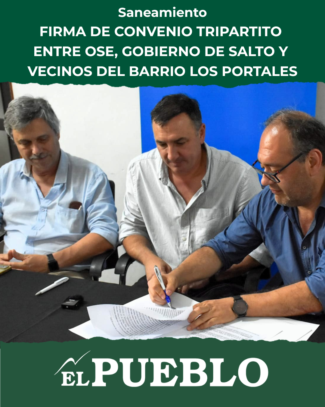 La Administración de las Obras Sanitarias del Estado (OSE), el Gobierno Departamental de Salto y los vecinos del barrio Los Portales firmaron un convenio para concretar la construcción de redes de saneamiento en la zona, una obra largamente esperada que beneficiará a numerosas familias salteñas.