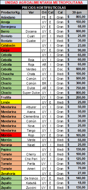 Según el informe semanal, hubo bajas en los precios de morrón amarillo, arveja, mandarina y ajo, mientras que aumentaron los valores del zapallito, zucchini, pepino, chauchas, apios, acelga y frutilla. En particular, la frutilla presentó problemas de maduración y falta de color debido a las bajas temperaturas, lo que presionó al alza su cotización.