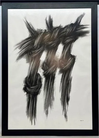 La textura del carbón vegetal, nacido de la madera, le permite un trazo que va de lo íntimo a lo contundente. Sus dibujos poseen algo de rito antiguo, el artista dialoga con un material milenario, y ese diálogo se filtra en la obra con una honestidad austera, casi ritual. Cuando incorpora la madera como soporte o discurso visual, la pieza respira doblemente, lo orgánico del trazo conversa con lo orgánico del origen.