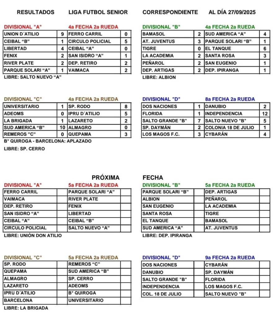 Solo bastaría desde EL PUEBLO repasar los partidos y resultados en cada caso. Las cuatro divisionales para tener en cuenta a la hora de la acción.