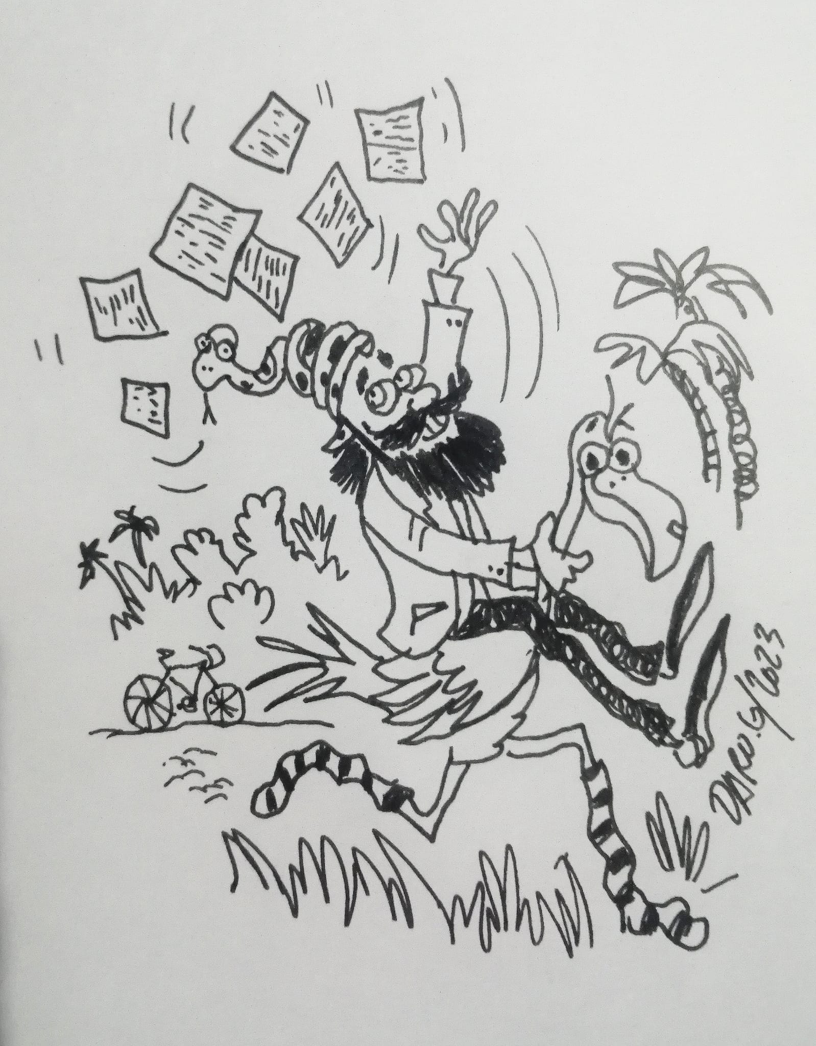 – Tu eres mi asistente, el investigador soy yo, el autor del libro, mi décimo libro sobre Quiroga, seré yo, qué duda hay entonces?. Mis colegas investigadores, compatriotas argentinos, extranjeros, catedráticos de las más remotas universidades del mundo que llegaron, nunca supieron el nombre del vecino con quien charlaba Quiroga de temas de curaciones, y de humor. Se sabía que el vecino era dueño de un gran humor y que sus relatos eran tan desopilantes, que por más cansado que Quiroga estuviera, yendo o viniendo, nunca dejaba de pasar por su casa, tomarse una caña y oírlo hablar de sus historias.