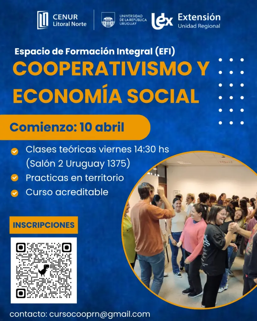La iniciativa, organizada por la Unidad Regional de Extensión del Cenur Litoral Norte, comenzará el viernes 10 de abril y se extenderá hasta el 3 de julio de 2026. El curso propone un enfoque integral que articula enseñanza, investigación y extensión, con el objetivo de promover la reflexión sobre los procesos asociativos y el desarrollo de la economía social en la región.