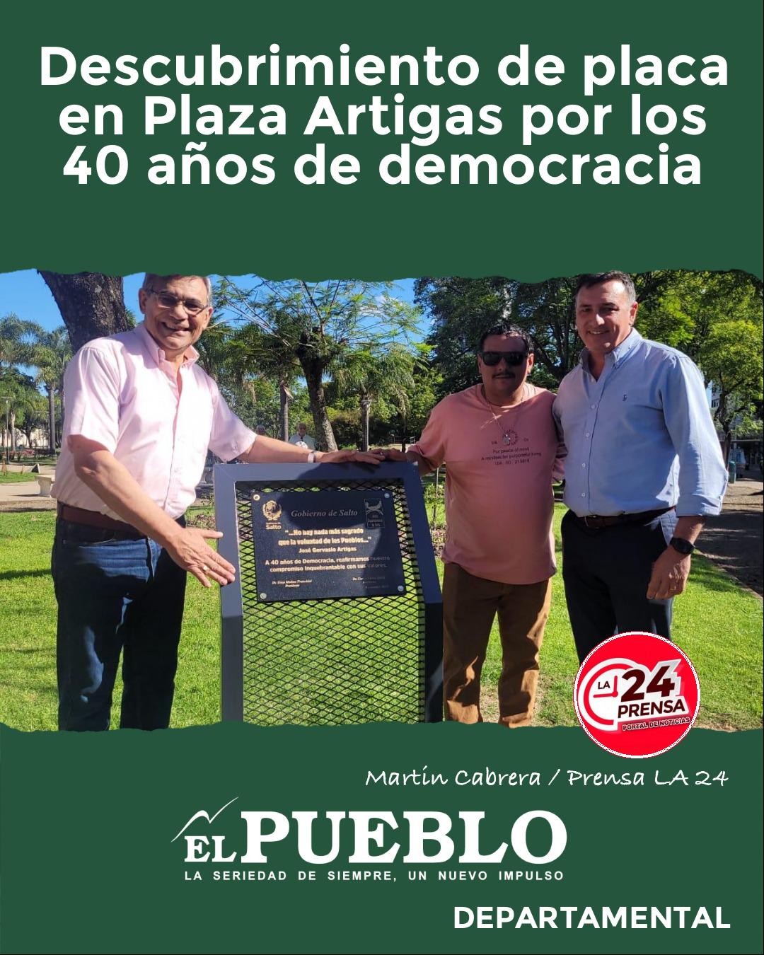 La Junta Departamental de Salto realizó este martes el descubrimiento de una placa conmemorativa en Plaza Artigas, en homenaje a los cuarenta años de democracia ininterrumpida en nuestro país.