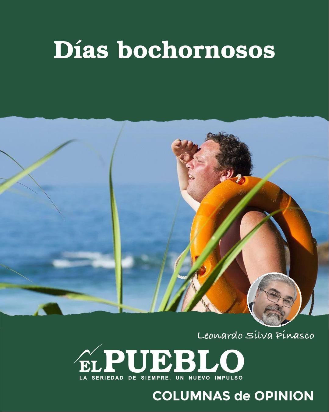 “Bochornoso. 2. Dicho del día, del tiempo o de un elemento atmosférico: de bochorno. Sinónimos: cargado, pesado, caluroso, sofocante, asfixiante, agobiante, tórrido”.