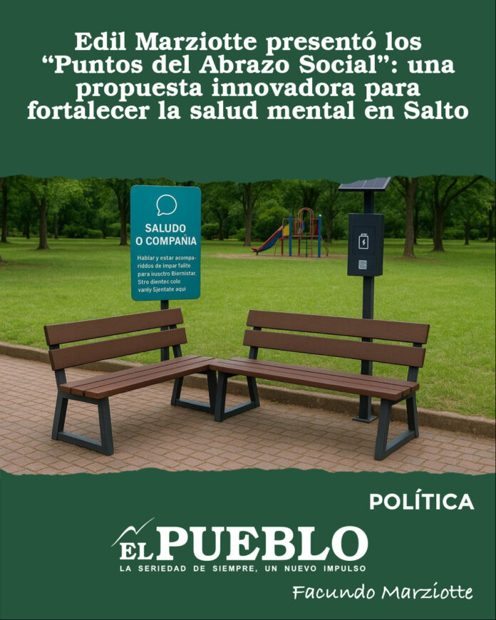 El edil Facundo Marziotte presentó ante la Junta Departamental de Salto el proyecto “Puntos del Abrazo Social y Conexión Comunitaria”, una iniciativa que busca incorporar en plazas y espacios públicos del departamento áreas especialmente diseñadas para promover la conversación, el acompañamiento entre vecinos y el bienestar emocional.