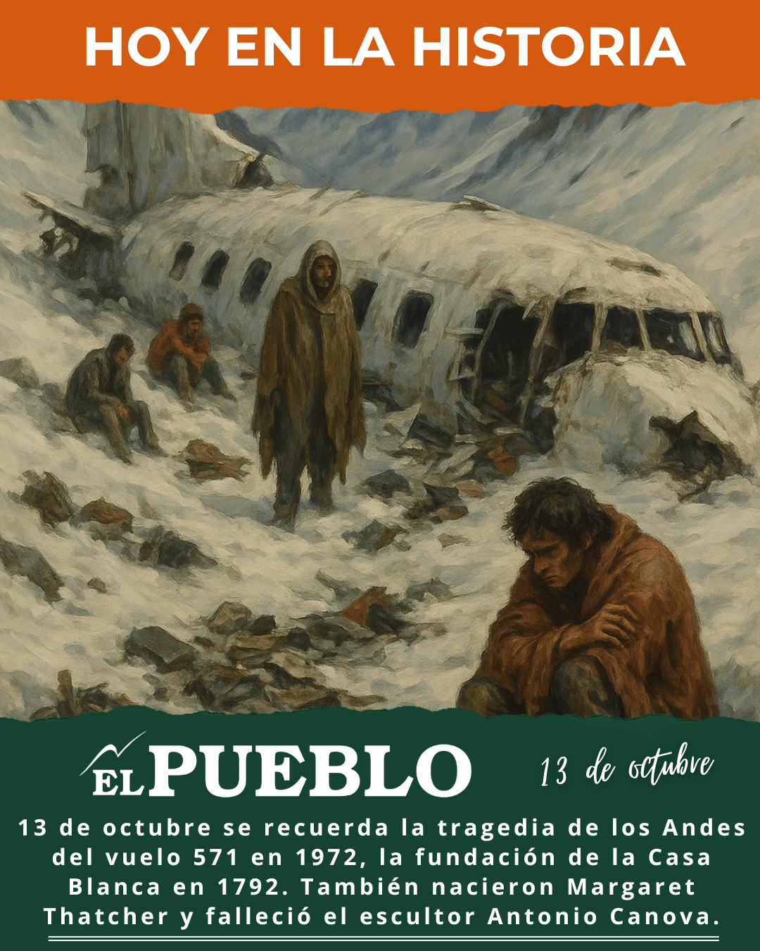 - 1972: Tragedia de los Andes – el vuelo 571 de la Fuerza Aérea Uruguaya que transportaba al equipo de rugby Old Christians se estrella en la cordillera de los Andes. De los 45 ocupantes, 16 sobrevivieron tras 72 días en condiciones extremas hasta ser rescatados en diciembre de ese año. El accidente causó 29 fallecimientos y es recordado como uno de los episodios de supervivencia más extraordinarios del siglo XX.