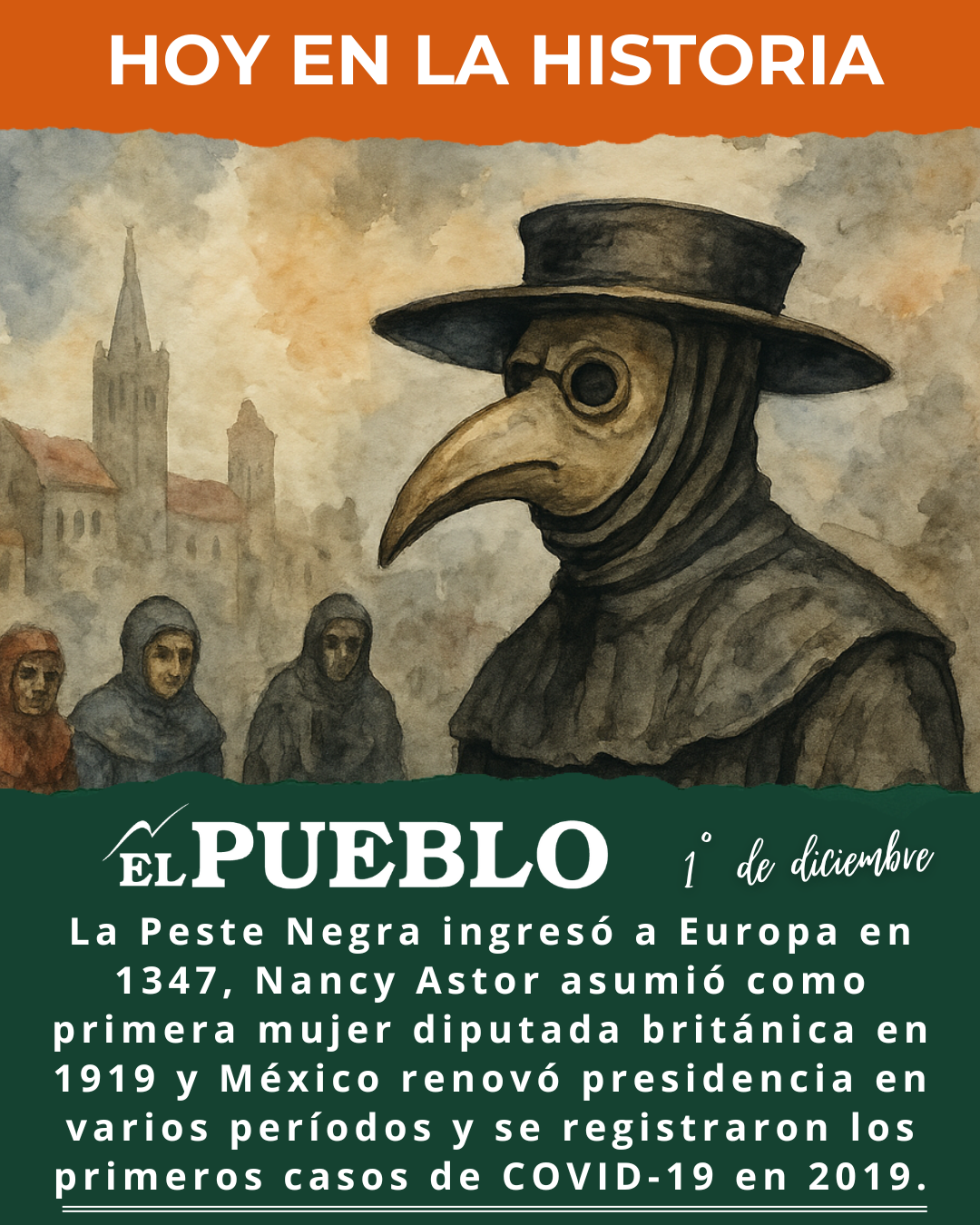 - 1347: A través de los puertos de Mesina, Génova y Venecia, ingresa la Peste Negra en Europa, desencadenando la devastadora epidemia que asolaría al continente en el siglo XIV.