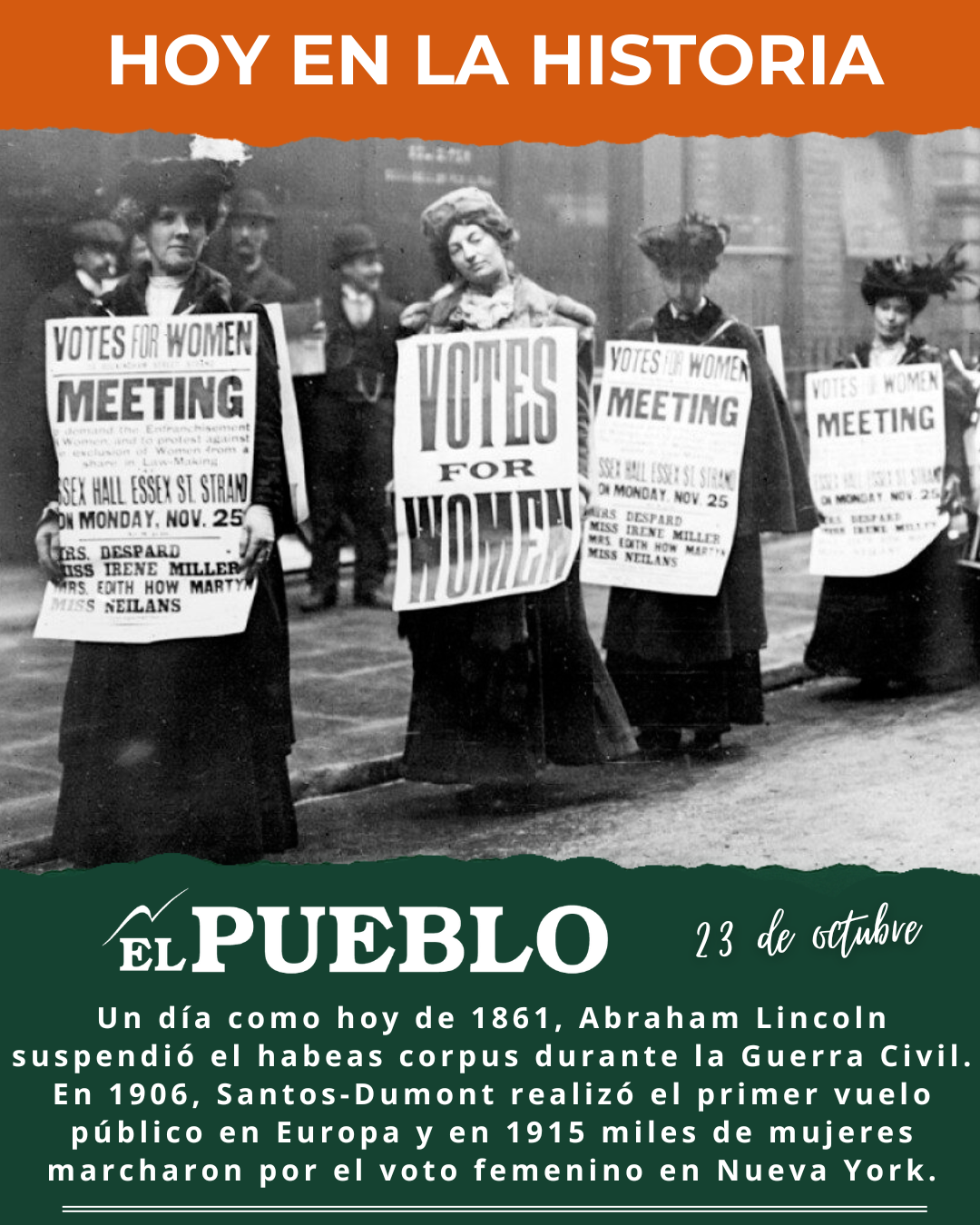 - 1915: Unas 33.000 mujeres marchan por la Quinta Avenida de Nueva York para reclamar el derecho al voto femenino, un hito en el movimiento sufragista estadounidense.