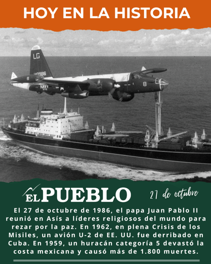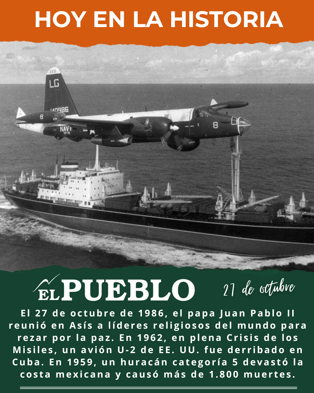 - 1962: En el punto álgido de la Crisis de los Misiles de Cuba, una batería antiaérea soviética emplazada en Cuba derriba un avión espía U-2 de Estados Unidos (27 de octubre de 1962). El piloto Rudolf Anderson muere, incrementando la tensión entre las potencias al borde de la guerra nuclear.